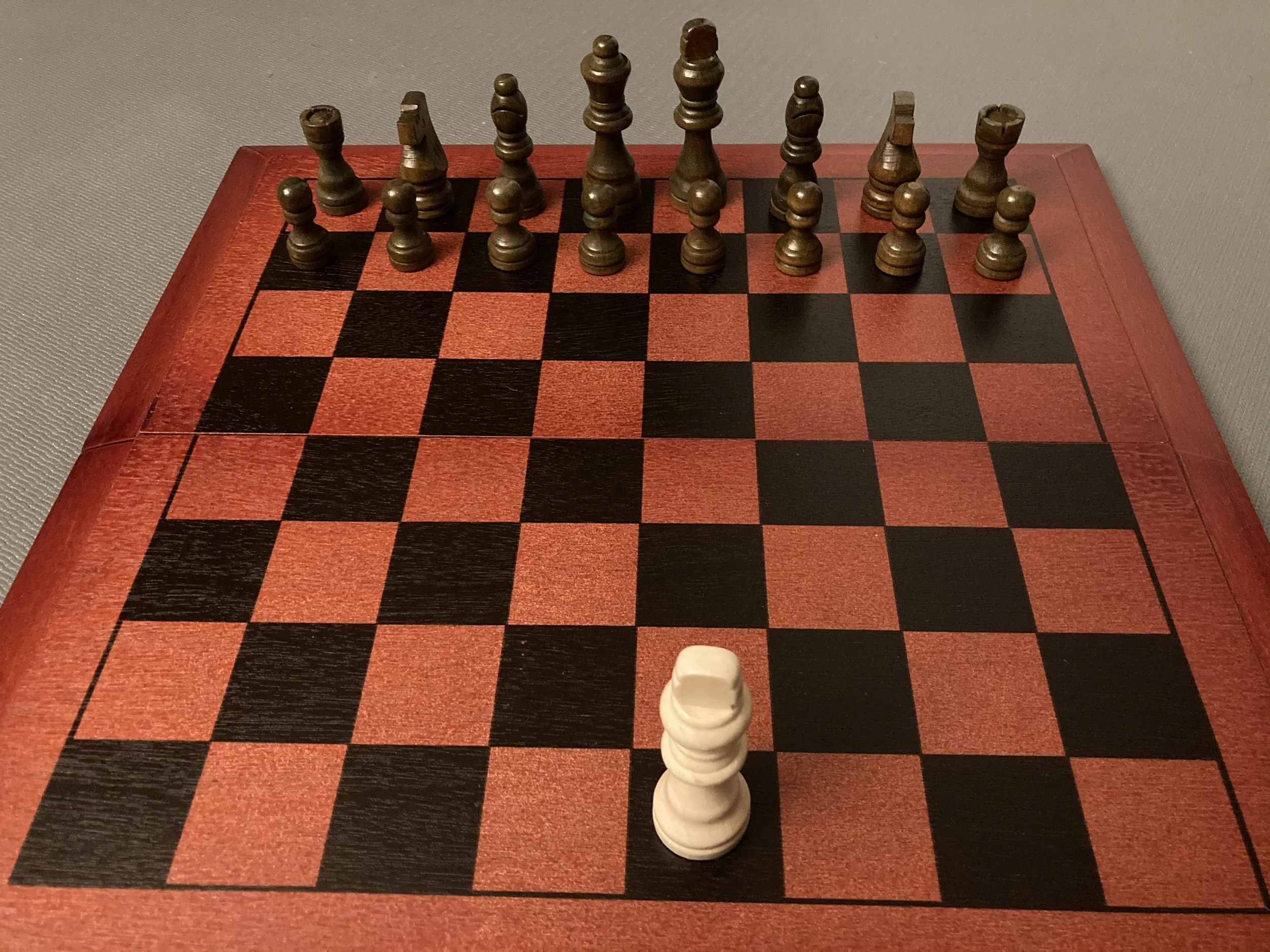 When setting up from Round 2 and onwards, “Xin” will receive additional pieces according to the pieces they had captured in the previous round, in the quantity that they had captured. That is to say, if previously they had captured 2 pawns and a 1 knight, they would begin then this round with 2 pawns and 1 knight in addition to their King. “Entropy” will always begin a round with 8 pawns, 2 knights, 2 bishops, 1 queen, and 1 king regardless of whether any were previously captured.